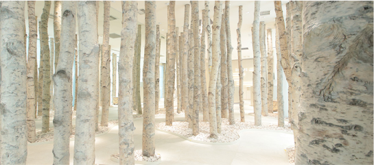 3パターンの表面仕上げをしたスギ角材を積み上げた巨大な木製ベンチ です。材提案からデザイン調整を経て、200mmのスギ材の調達と各種加工とを限られた納期で行うという、当社でもチャレンジングな案件でした。無事納品したベンチはご依頼主様にもお喜びいただけました。